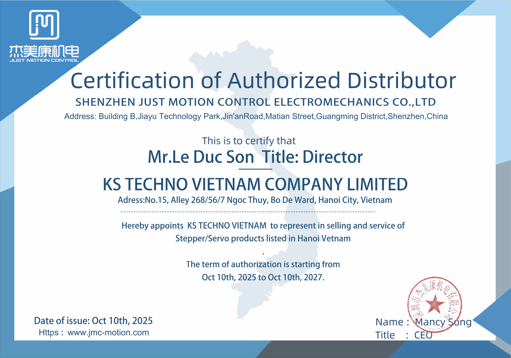 Công ty TNHH KS Techno Việt Nam tự hào là đơn vị cung cấp dòng AC Servo JMC chính hãng tại thị trường Việt Nam.